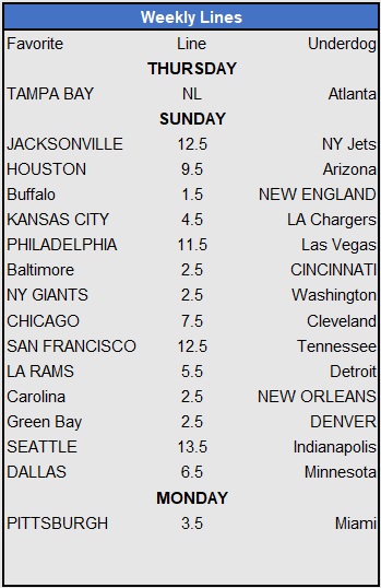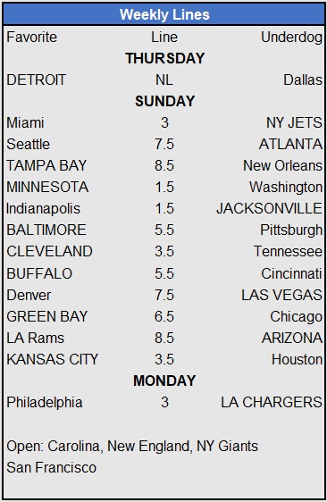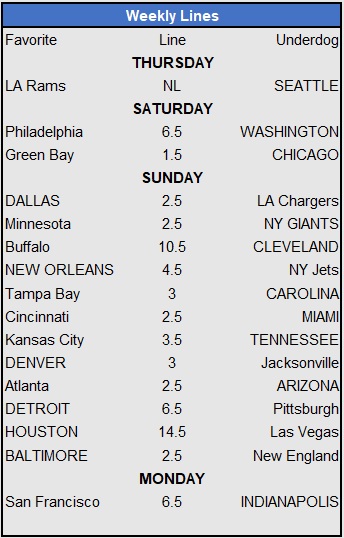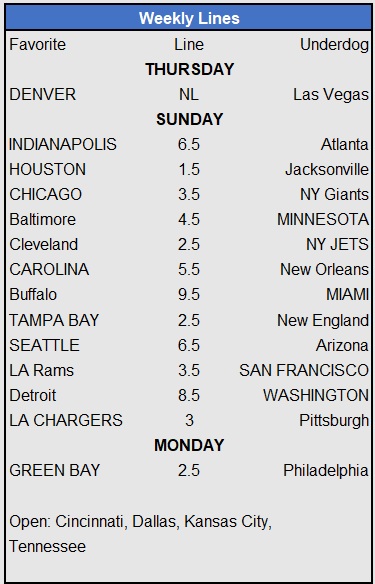Note: Bets must be placed by Saturday night at midnight in order to be considered on time.
