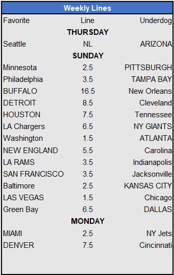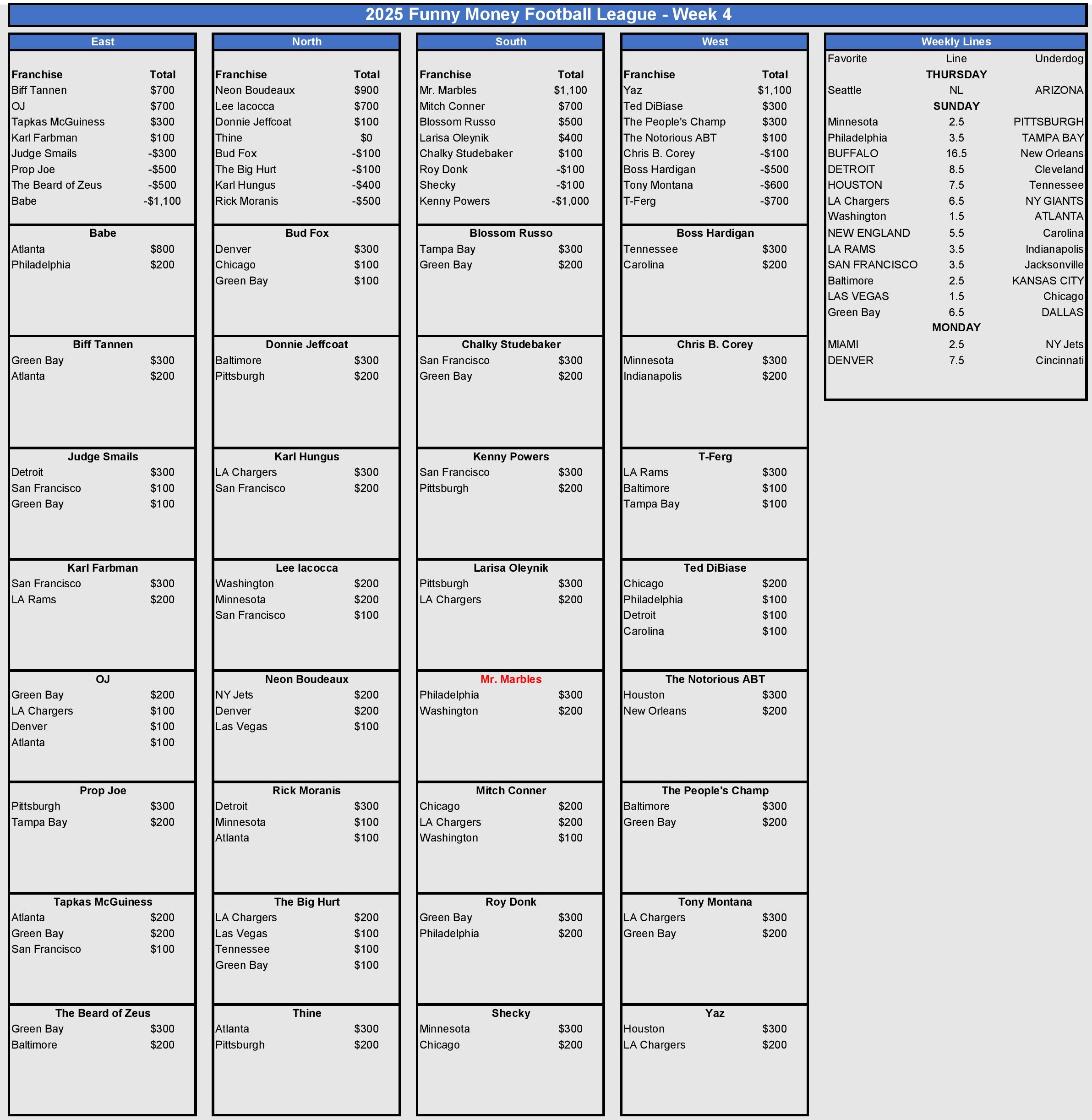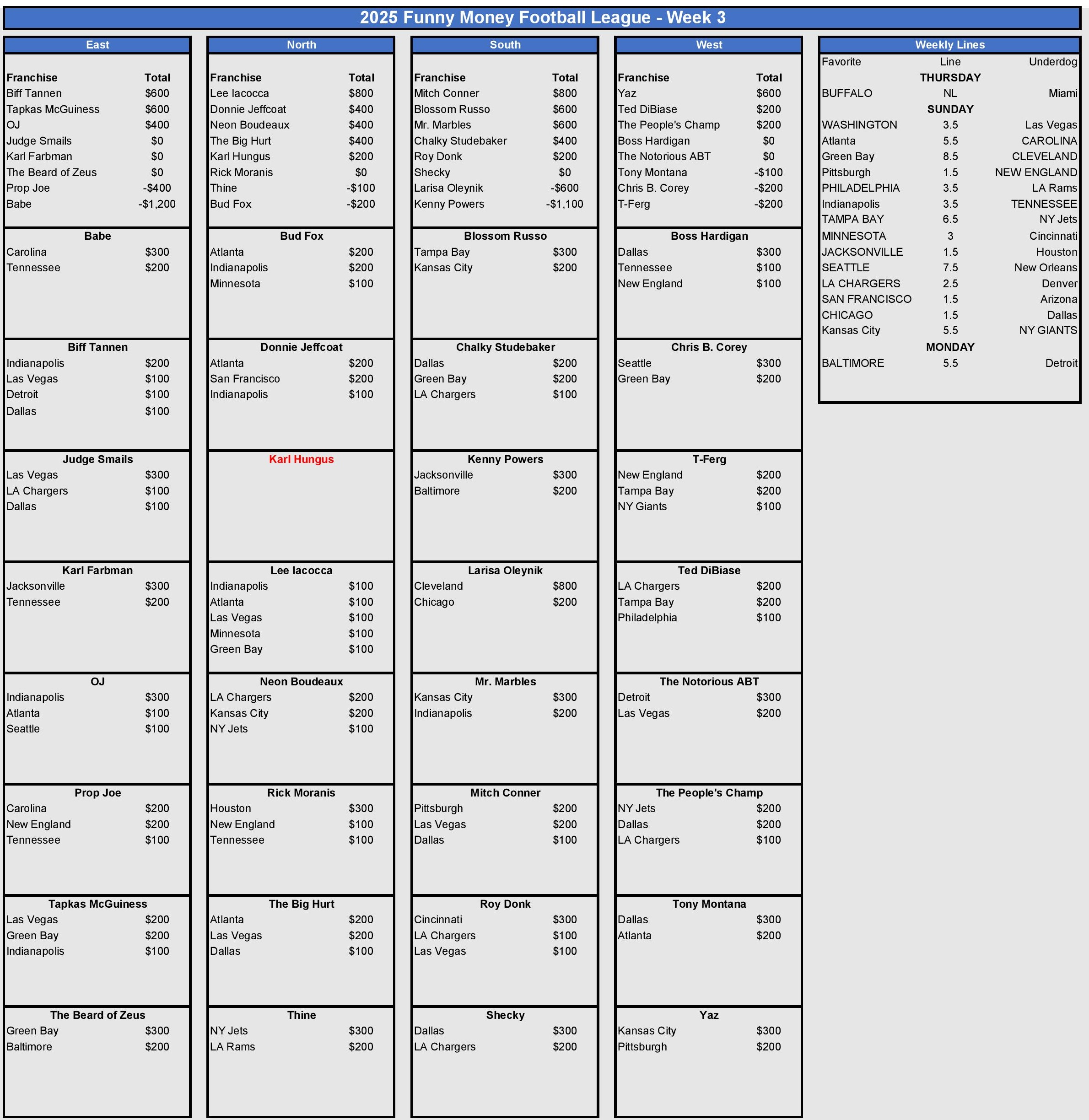 Note: Bets must be placed by Saturday night at midnight in order to be considered on time.
