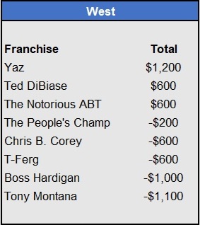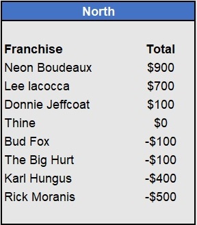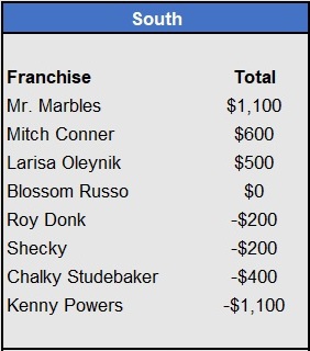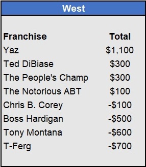 – The Beard of Zeus, Karl Hungus, The Big Hurt, Boss Hardigan, and Tony Montana all went winless for the second straight week