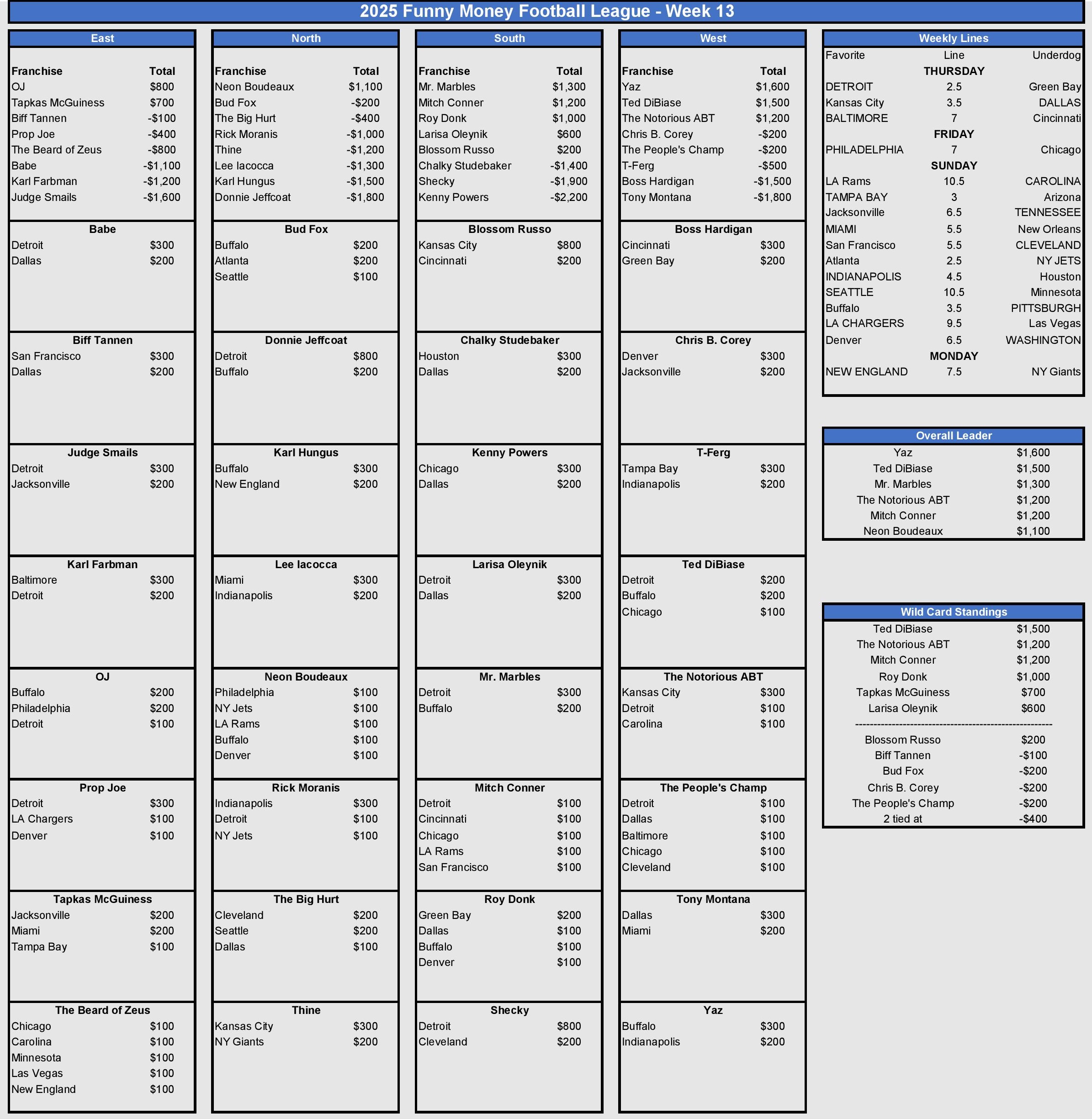 Week 13 Standings