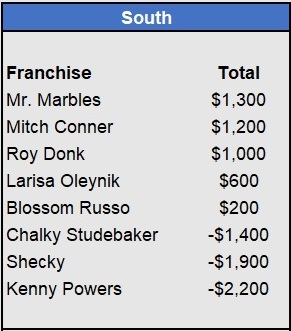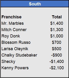 – Mr. Marbles moves into first in the South, capitalizing on Mitch Conner’s tough week