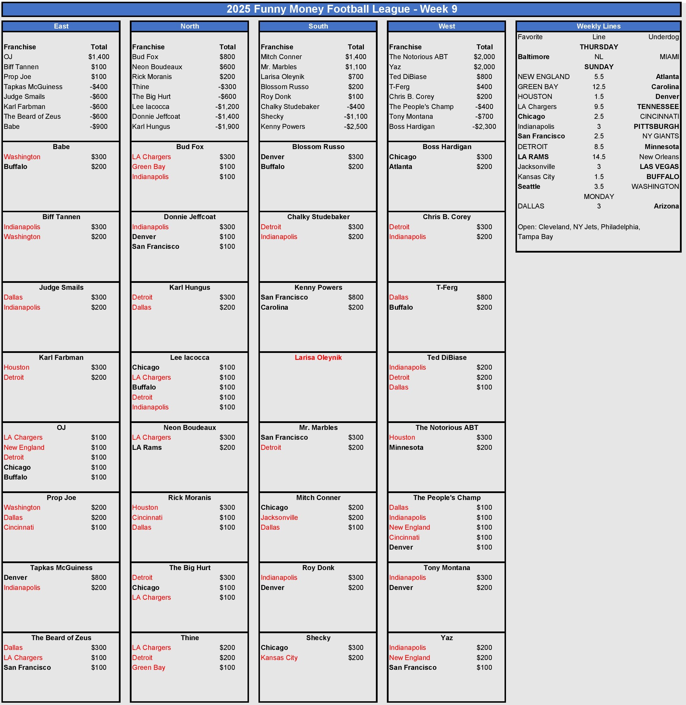 – A few lead changes, with Neon Boudeaux moving into first in the North after Bud’s -$500 week and The Notorious ABT takes a slight lead in the West
